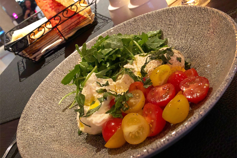 Burrata and Heirloom Tomato Salad – baby arugula, fresh basil, extra virgin olive oil, sweet onion vinaigrette.
